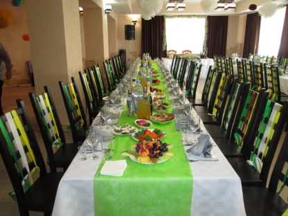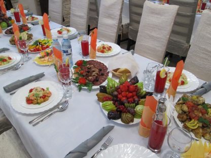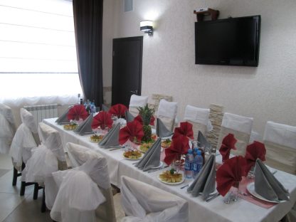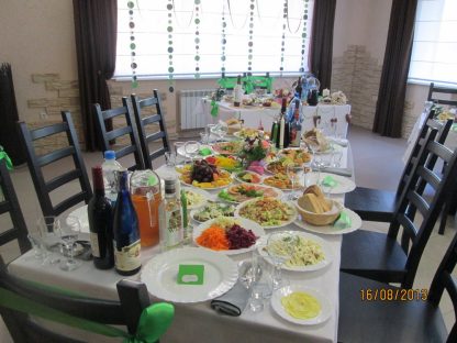 К Вашим услугам банкетный зал, опытный и вежливый персонал, изысканная кухня. Наше кафе предоставляет услуги по проведению любых банкетов. Уютная и незатейливая обстановка зала, расположенного на первом этаже, с первых минут располагает к приятному отдыху. Добродушный и приветливый персонал и интересные дизайнерские идеи в оформлении зала – все это сделает вечер, проведенный в нашем кафе – уголке экзотики озера Кандрыкуль, незабываемым. У нас Вы можно приятно отдохнуть, отметить торжество или провести деловую встречу. Также, наше кафе может предоставить Вам зал, чтобы Ваш банкет стал самым лучшим из всех, проводимых на берегу живописного озера Кандрыкуль.